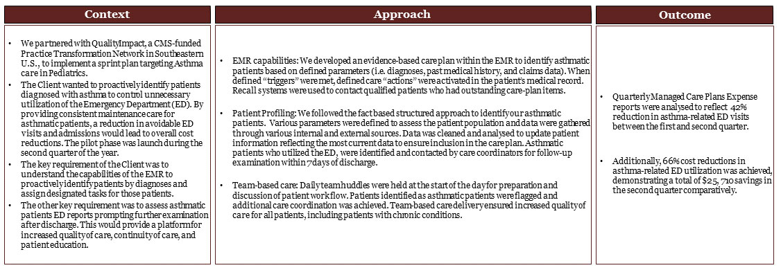 We implemented an evidence-based care plan to improve the quality of life for our Asthma patients and reduce healthcare expenditures.