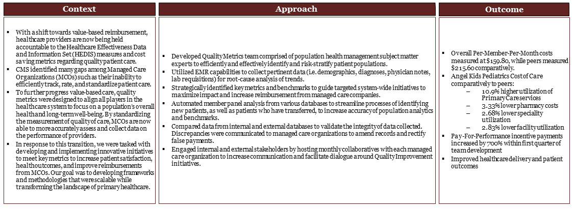 We developed a Quality Metrics Team to enable transitions toward a Population Health Management model.