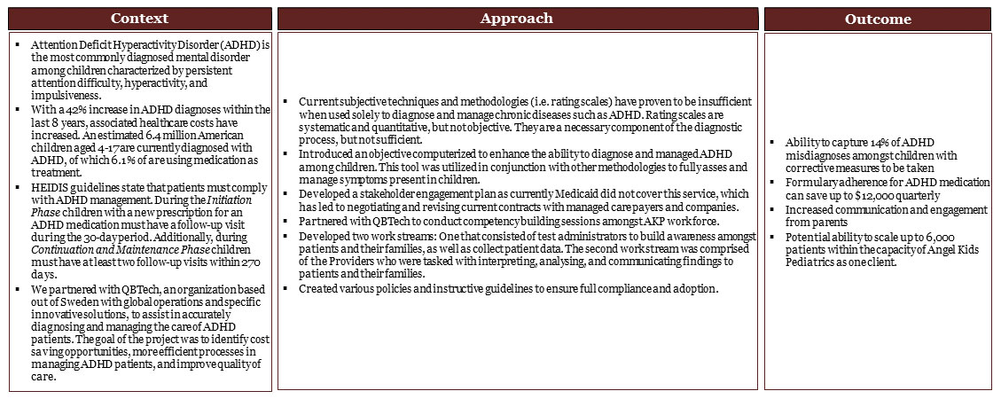 We implemented an objective Attention Deficit Hyperactivity Disorder (ADHD) to effectively diagnose and manage patient care and decrease associated costs.